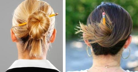 - карандаш выручит в офисе (школе), когда распущенные волосы то и дело лезут в глаза, мешают сосредоточиться;