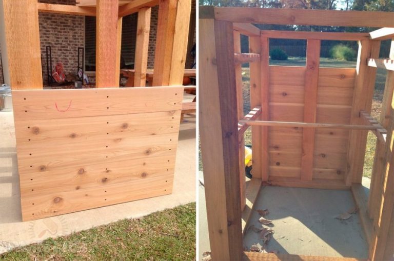 Основание короба — деревянный каркас, сделанный из брусьев сечением 4х4 см. Подробные чертежи шкафа для холодного копчения, который собирается своими руками, вы можете видеть в этой публикации.