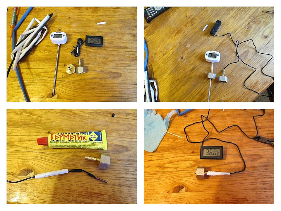 Для любого устройства потребуются соединительные элементы: шланги, штуцеры, переходники и т. д. Также нелишним будет оснастить аппарат термометром для контроля за процессом. Для соединения частей аппарата лучше использовать силиконовые/металлические трубки, медные или нержавеющие штуцеры/гайки/ниппеля, прокладки из силикона, но не из резины.