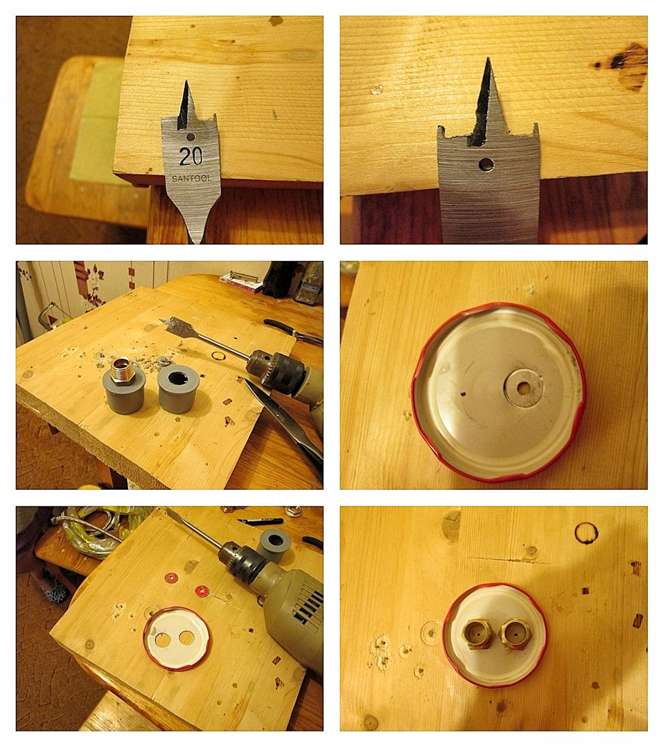 В крышке просверлить отверстие под паропровод, зачистить края.