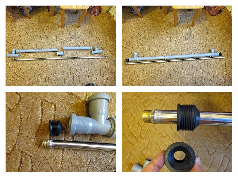 - На конец трубы устанавливается сетчатая заглушка на шайбах, чтобы содержимое не выпадало.