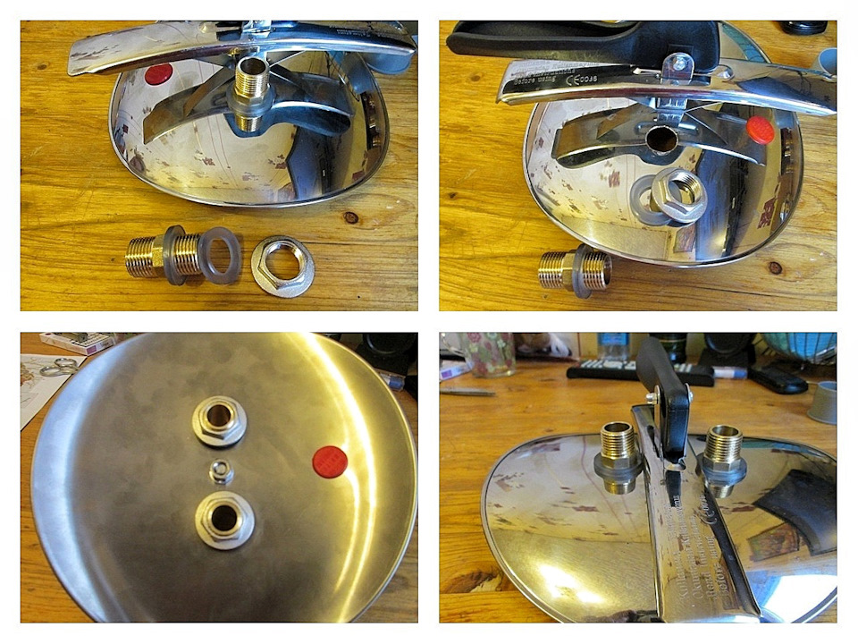 Вставить переходник, закрепить его гайкой с внутренней стороны, снабдив силиконовой прокладкой для герметичности.