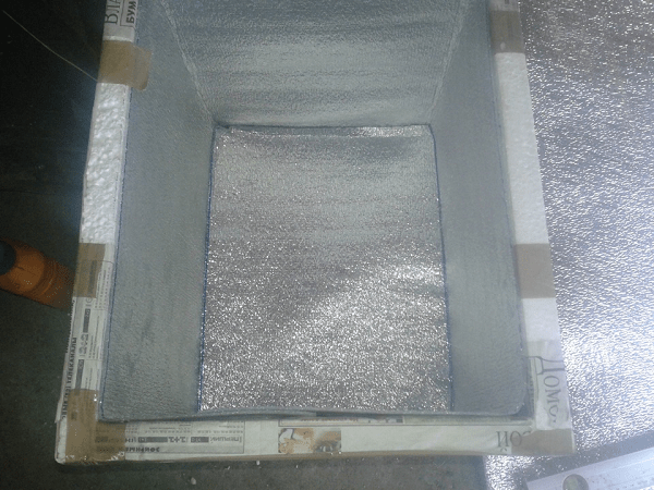 Важно знать, что все детали должны соприкасаться друг с другом очень плотно, в противном случае внутрь проникнет тепло и все старания пойдут насмарку. Если есть возможность, перед тем, как вставить в сумку или короб, заготовки оборачиваются скотчем, чтобы предотвратить его разрушение.