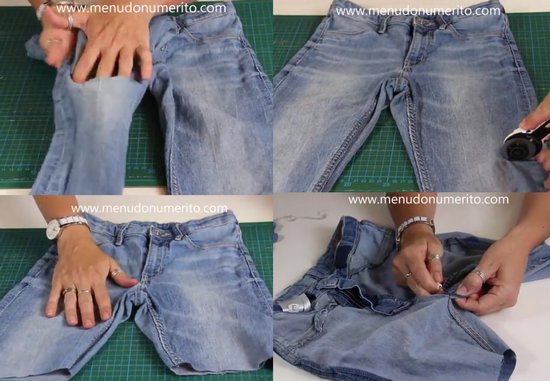 - Определяемся с длиной юбки и обрезаем джинсы исходя из этого. Хоть это и мини-юбка, не стоит делать ее слишком короткой, иначе это будет выглядеть вульгарно.