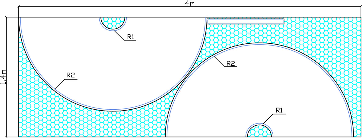 Второй радиус равен длине юбки плюс первый радиус