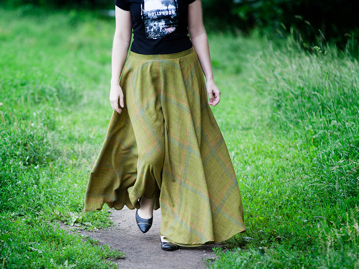Рекомендации по тканям для юбки солнце, полусолнце — никогда не покупайте ткани со стрейчем. Только ткани без стрейча. На узких юбках ткани со стрейчем высиживаются. Такую юбку можно сшить из шерсти, полушерсти, использовать ткань в клеточку, летний вариант из шёлка, из шитья, шифона, выбор только за вами и в рамках вашего вкуса и фантазии. Такую юбочку можно сшить на подкладке и без подкладки, но я не приемлю юбки без подкладки. Эта юбочка будет с подкладкой.