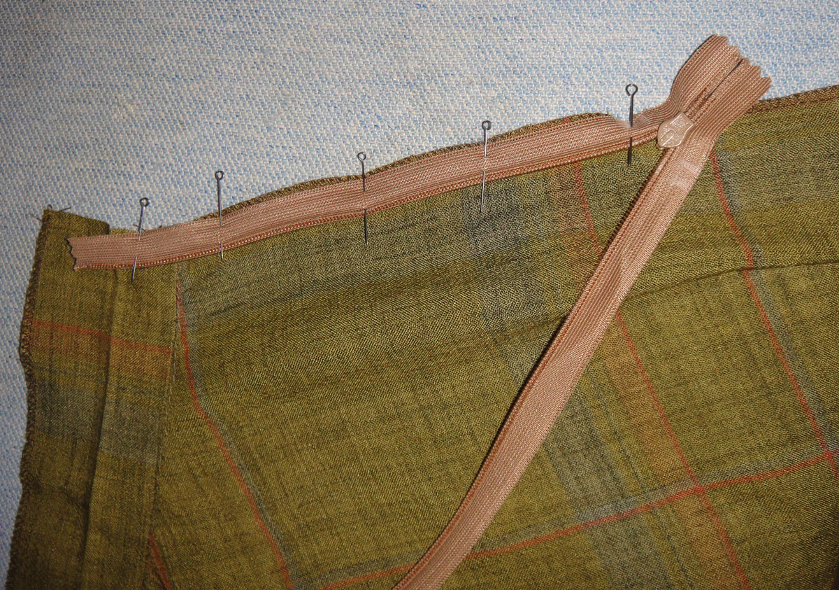 Приутюжить швы, натянув ткань с помощью булавок на гладильной доске. Можно сразу после утюга прижать шов подушечкой или бруском для утюжки (это называется «застоять шов»). Дать остыть шву, только потом снять юбку с доски, убрав булавки.
