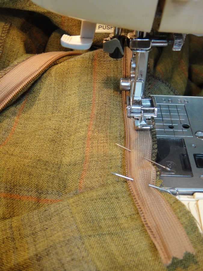 Стачиваем боковые швы и помним, что надо оставить открытый участок шва для втачивания застёжки-молнии.