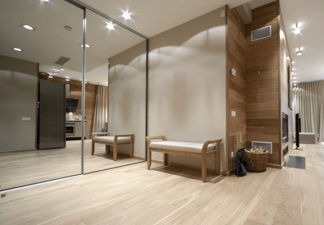 Актуальность зеркальных полотен резко возрастает в узких коридорах — пространство раздвигается чуть ли не вдвое. Полотна монтируются разными способами:
