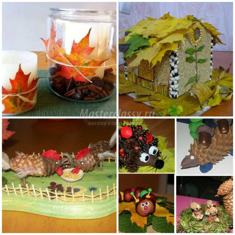 — это работы выполненные чаще всего из природного материала. Желуди и каштаны, шишки и орехи, семена и ягоды, да еще разноцветные листья – все это универсальные поделочные материалы, на которые так щедра осень. В разделе представлены мастер-классы и фотографии с выставок из детских садов и школ. Если вас попросили сделать поделку с ребенком в детский сад на темы: «Дары осени», «Кладовая осени», «Что нам осень принесла», «Золотая осень» и т.п. — обязательно посмотрите материалы из этого раздела.